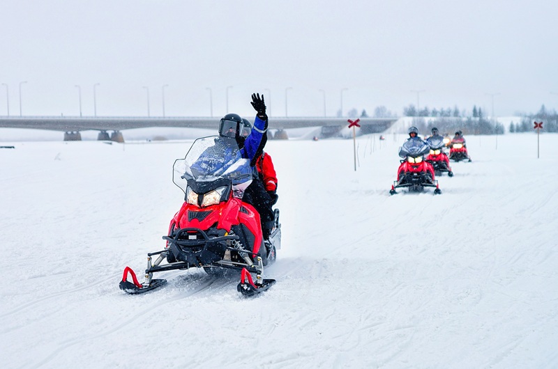 Pequeno-almoço. Deslocação ao escritório de safaris para recolher o capacete e as luvas necessárias para a excursão de safari em mota de neve. Os guias explicarão as instruções de utilização e as normas de segurança. Os adultos partilharão a mota de neve, enquanto as crianças realizam a atividade no trenó conduzido pelo guia. Descubra a emoção de conduzir uma mota de neve atravessando rios e florestas cobertas de neve. Durante o percurso, o guia escolherá um bom local para perfurar um buraco no gelo e, com um pouco de sorte, os peixes estarão à espera de ser capturados. De seguida, pausa para um almoço ligeiro junto à fogueira, acompanhado de bebidas quentes. Regresso de mota de neve ao hotel. Resto da tarde livre. Alojamento.