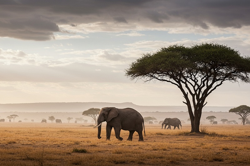 (148 km) Pequeno-almoço. Partida para a zona este do parque, onde acampará esta noite. Dia completo de safari, cruzando o parque de um lado ao outro. Uma bacia de lago de uns 5.000 km², geralmente seco, cria uma paisagem única. Este território oferece uma aproximação particular à vida selvagem do lugar, adaptada ao meio árido e seco. Poderá ver, entre outras espécies: elefantes, rinocerontes negros, chitas e impalas de fronte negra. No percurso pelo seu interior, recomendamos parar nos waterhole, onde se congrega a vida selvagem para beber nas suas margens. Alojamento.